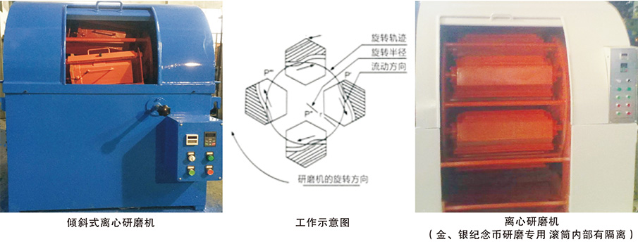 本產品采用了行星式加工原理,適用于大小批量小型零件的去除毛刺、表面氧化層及拋光的加工,在回轉圓盤上配 置四個滾筒(四個研磨槽)或六個滾筒,滾筒即隨圓盤高速旋轉和自轉的相對運動,從而得到了滾筒中零件和磨料、水、 研磨液的相互擠壓的磨削運動。